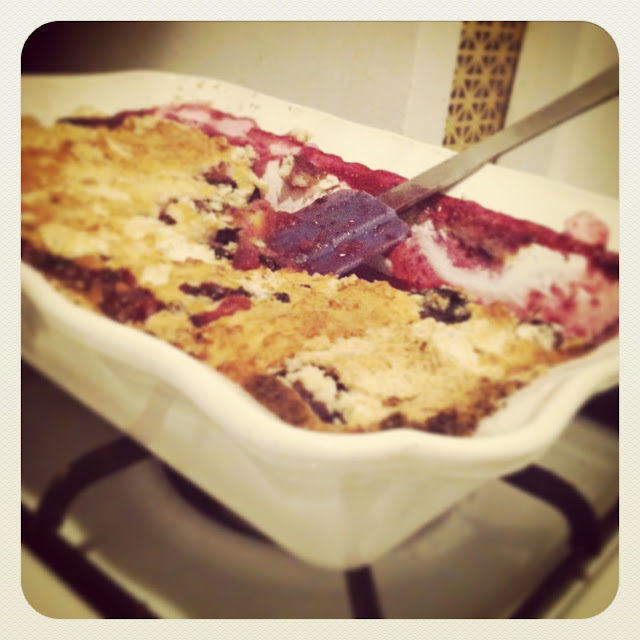 Because I love all things sweet, I found this cobbler recipe and decided to test it out last night. It was delicious and so easy to make! While I have yet to master the art of taking a food photo, you'll have to trust me that it was tasty.